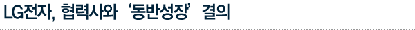 LGÀüÀÚ¿Í Çù·Âȸ»çµéÀº Çù·Â°ú Çõ½ÅÀ» ±â¹ÝÀ¸·Î °æÀï·ÂÀ» »óÈ£ °ÈÇÒ ¼ö ÀÖ´Â µ¿¹Ý¼ºÀå Àü·« ¹× ¼¼ºÎ ½ÇÇà¹æ¾ÈÀ» ³íÀÇÇß´Ù. Çù·Âȸ»çµéÀº 'Á¤µµ°æ¿µ ½Çõ ¼±¾ð¹®' °áÀÇ·Î LGÀÇ µ¿¹ÝÀڷμ ÀÚ¹ßÀûÀÎ Á¤µµ°æ¿µ ½Çõ ÀÇÁö¸¦ Ç¥¸íÇß´Ù.